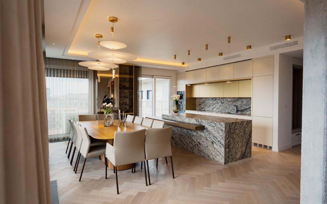 Szklane panele dotykowe eliminują nadmiar przycisków na ścianach, oferując nowoczesny wygląd i wszechstronność. Jeden panel steruje nawet dwunastoma obwodami oświetlenia, roletami, ogrzewaniem i klimatyzacją.